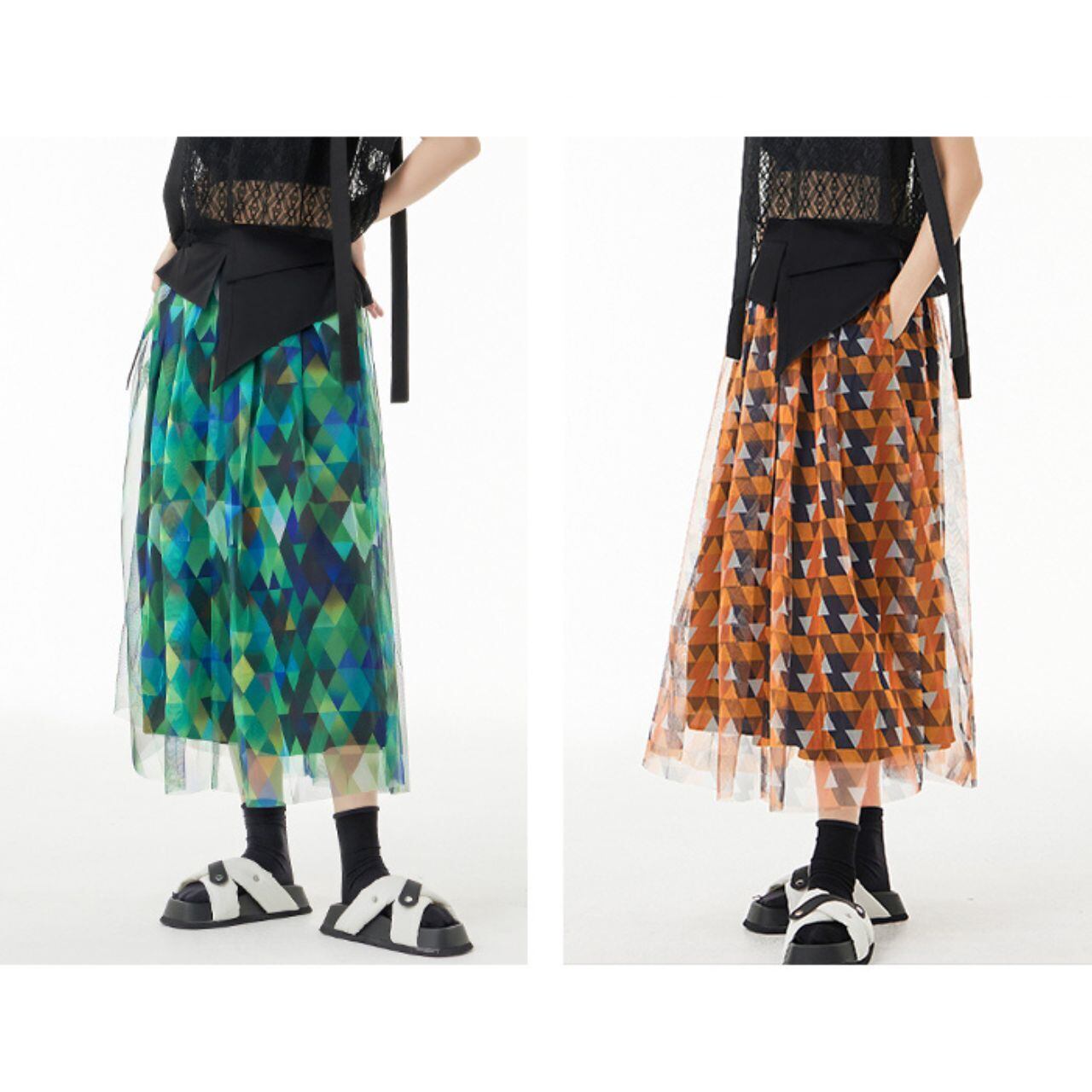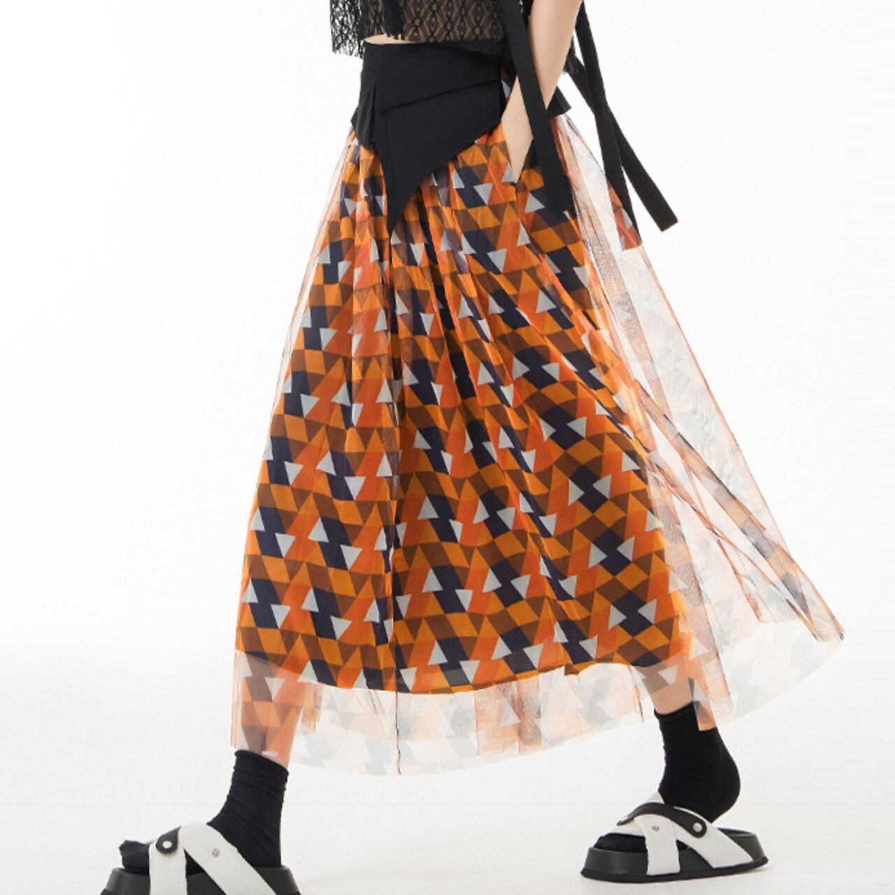 Waist Mark Design Mesh Skirt【00206】