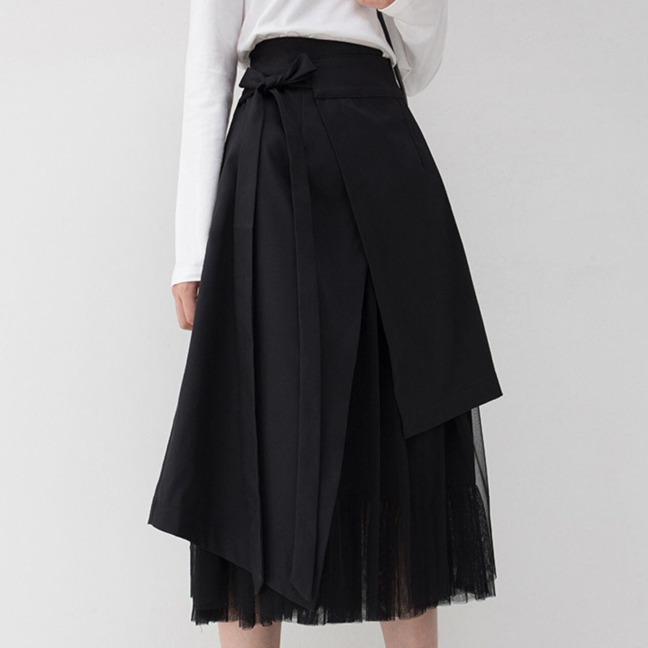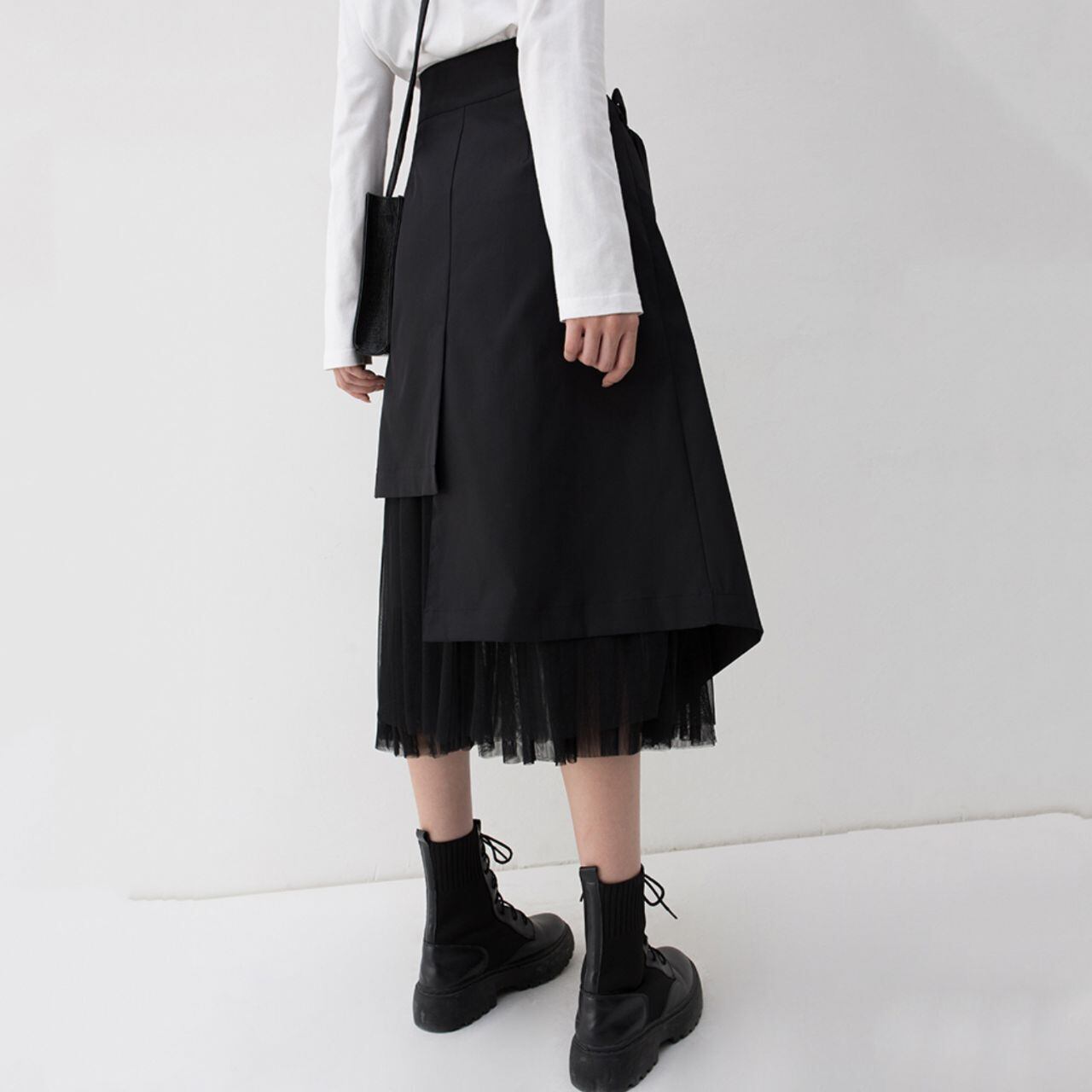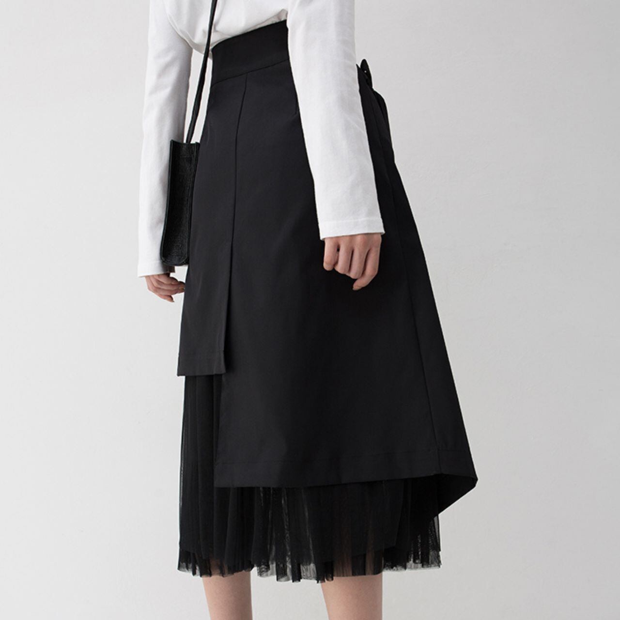 Tulle Docking Asymmetry Wrap Skirt【00378】