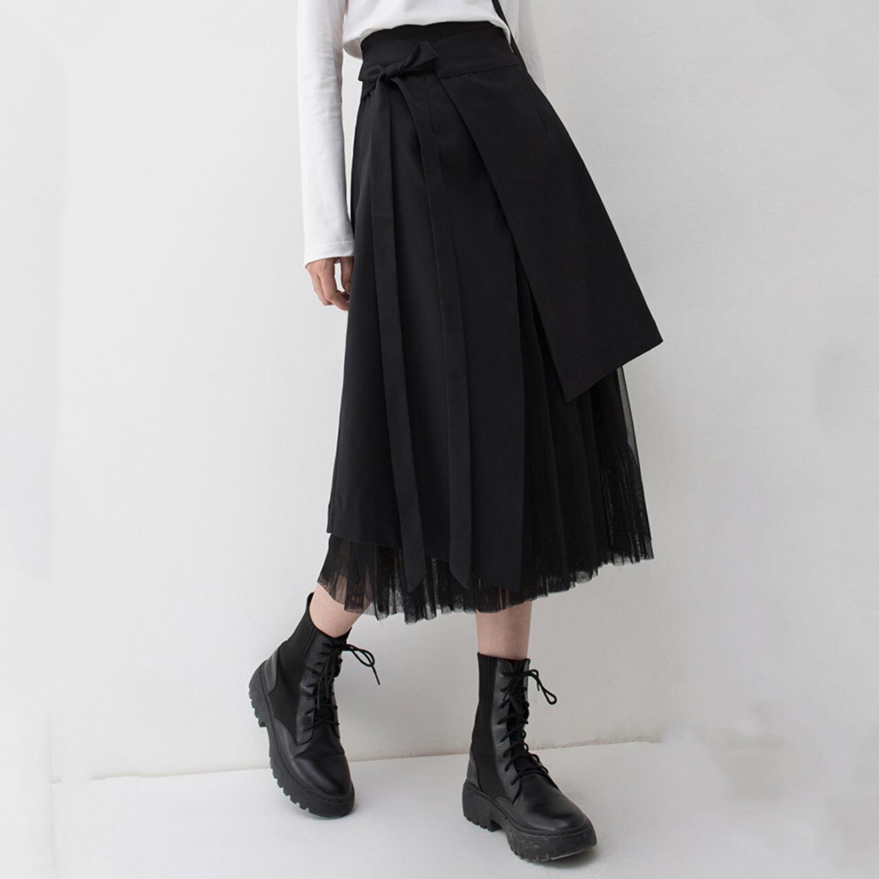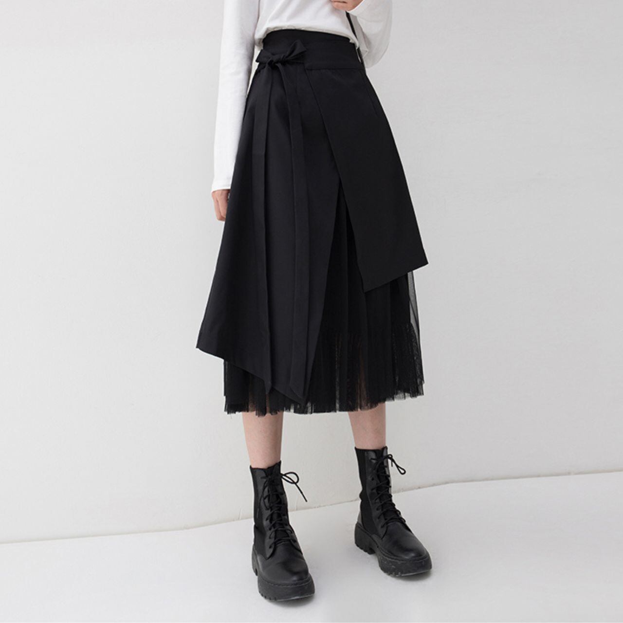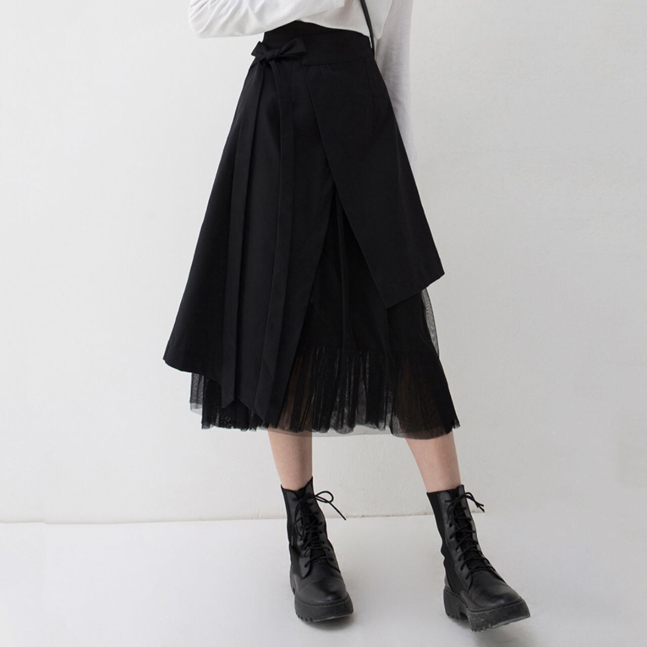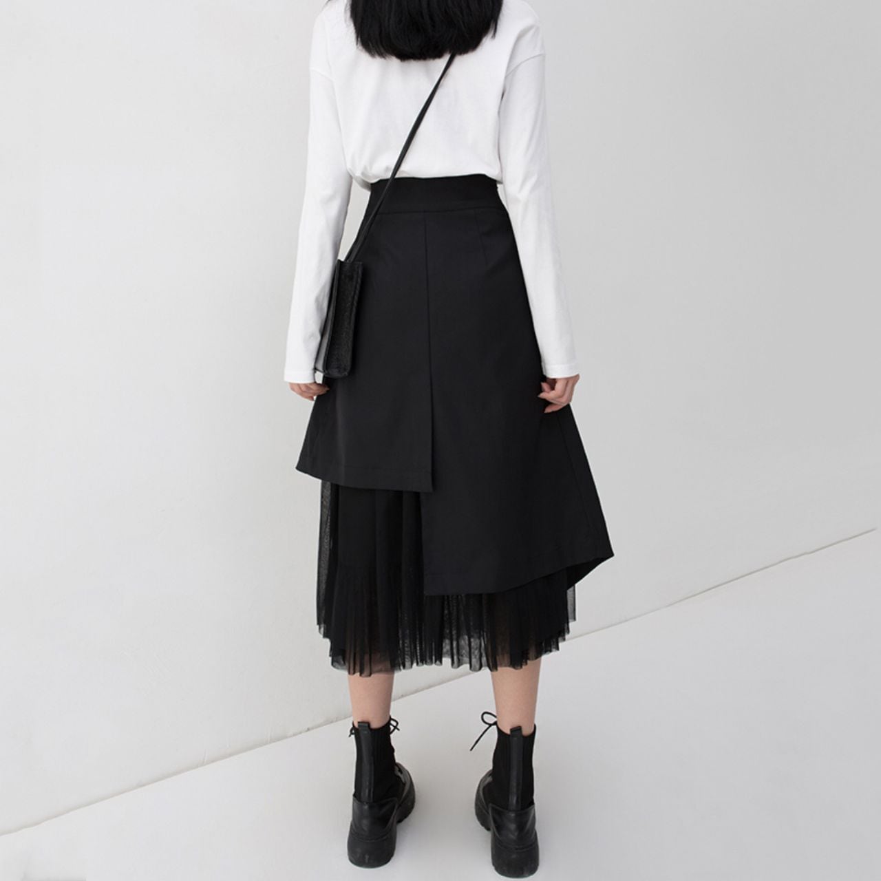Tulle Docking Asymmetry Wrap Skirt【00378】